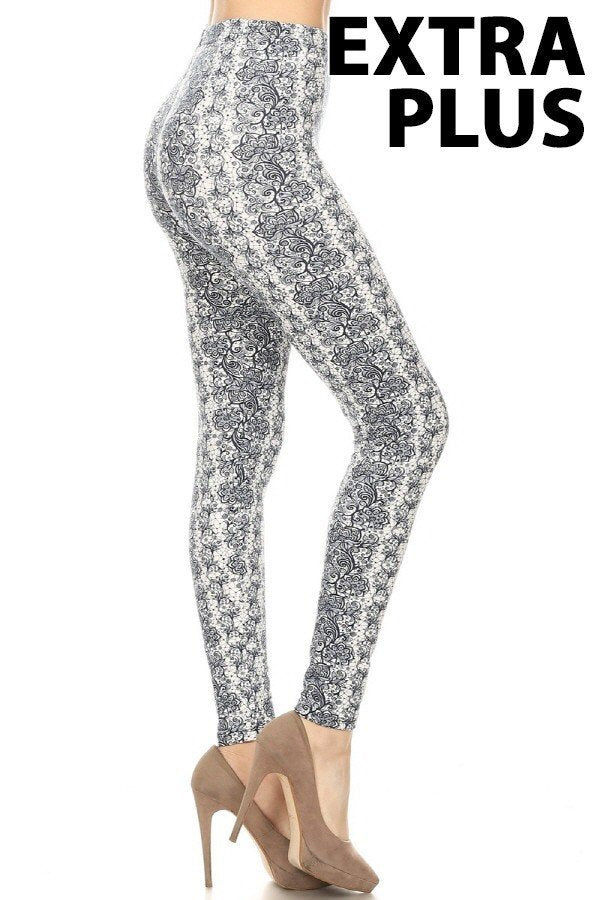 3X4X Multi Print Leggings Skinny, Full Length, Elastic High Waist, Soft Material 92% Polyester 8% Spandex