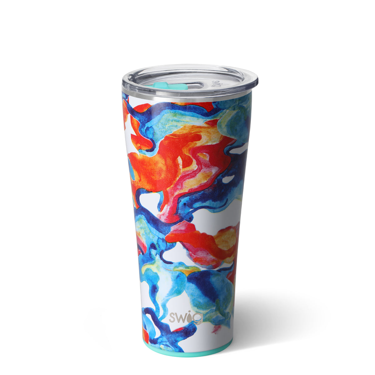 These NEW 32oz Tumblers feature the same great technology that Swig Life is known for, but with bigger and better features. Each Signature Swig Life Tumbler keeps drinks cold up to 24 hours and hot up to 12 with its double-wall, vacuum-sealed copper coated insulation. The non-slip silicone base keeps your cups from tipping or making too much noise when you set them down. The powder-coated finish keeps your Swig looking fresh and is dishwasher safe!