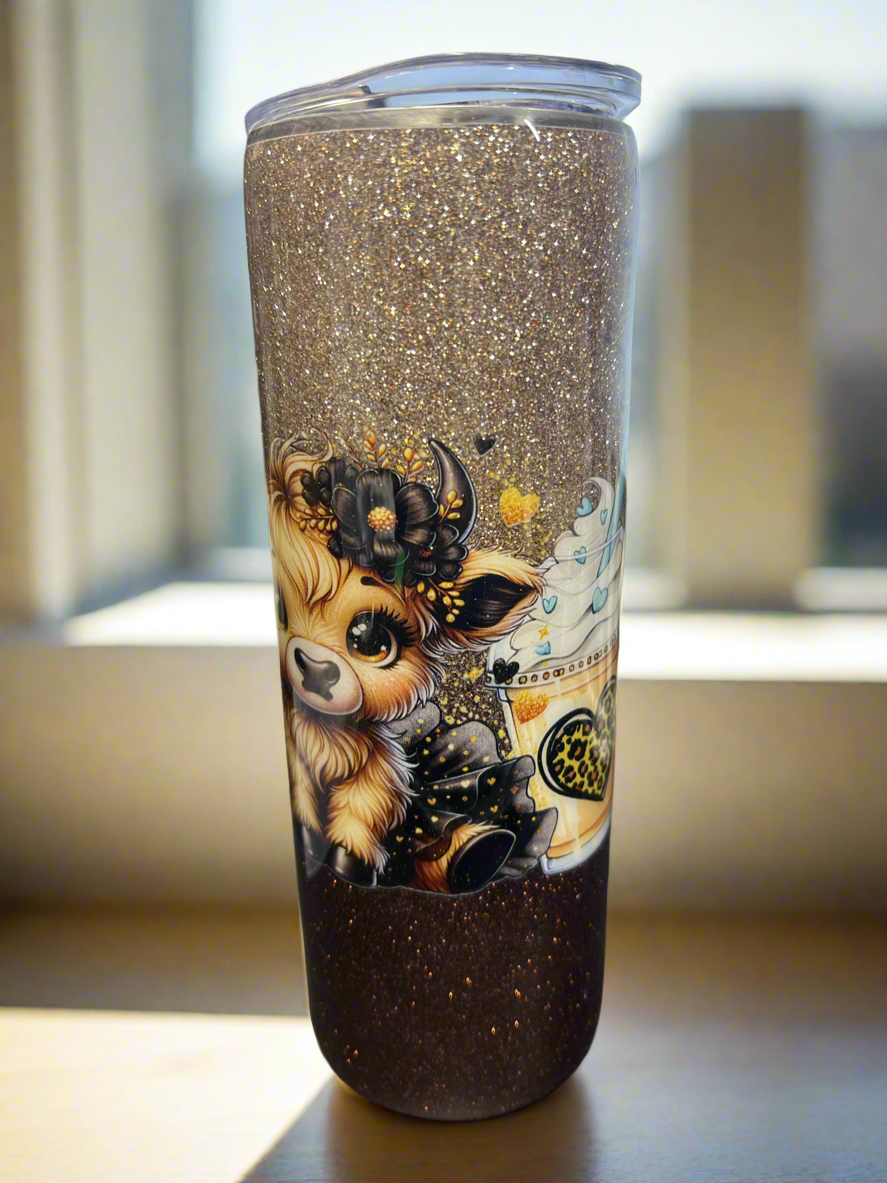 Custom Brown Iced Coffee Cow Stainless Skinny Tumbler w/Sliding Lid and Straw- 20 Oz