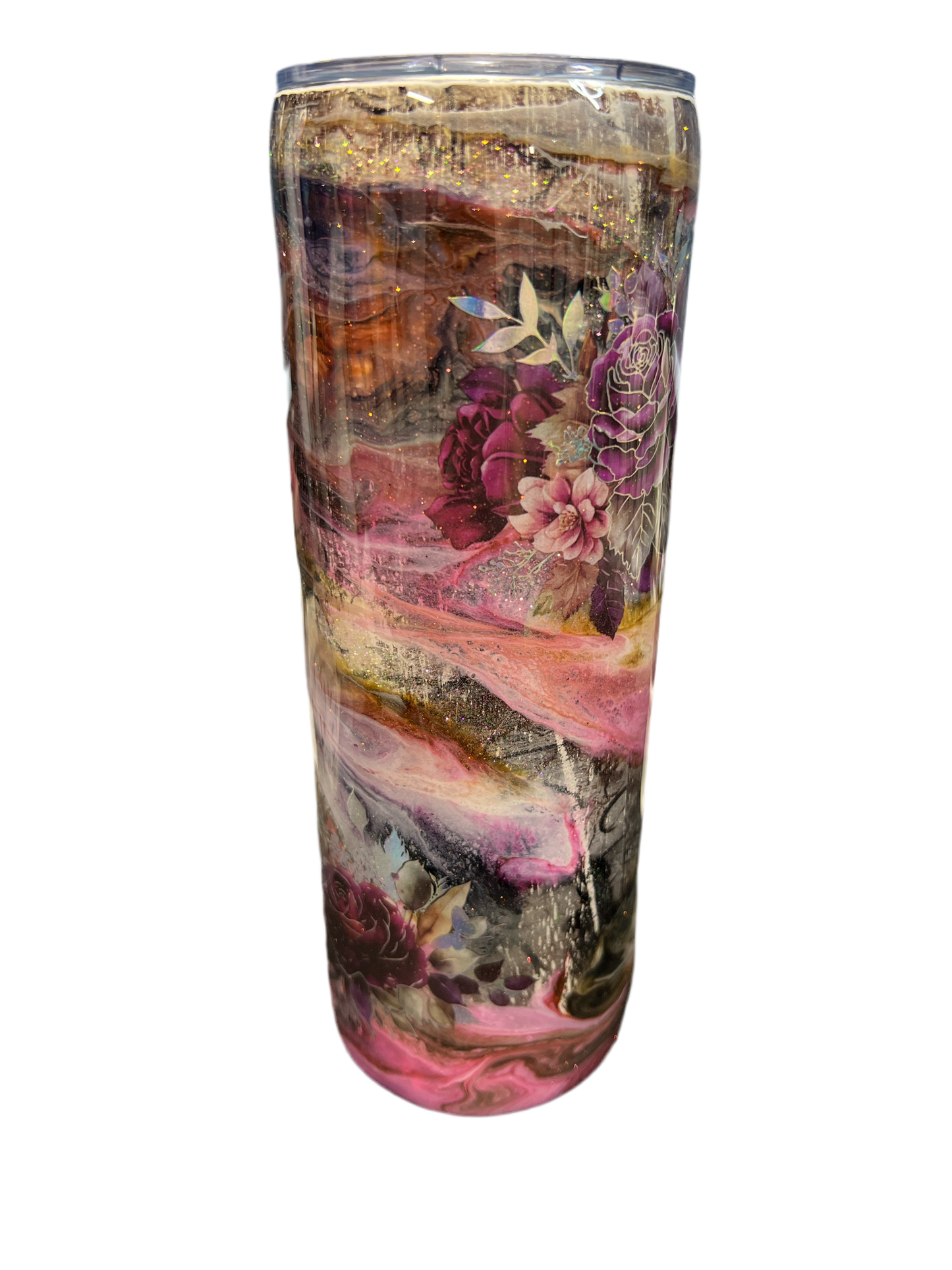 Custom Mauve Rose Stainless Skinny Tumbler w/Sliding Lid and Straw- 20 Oz