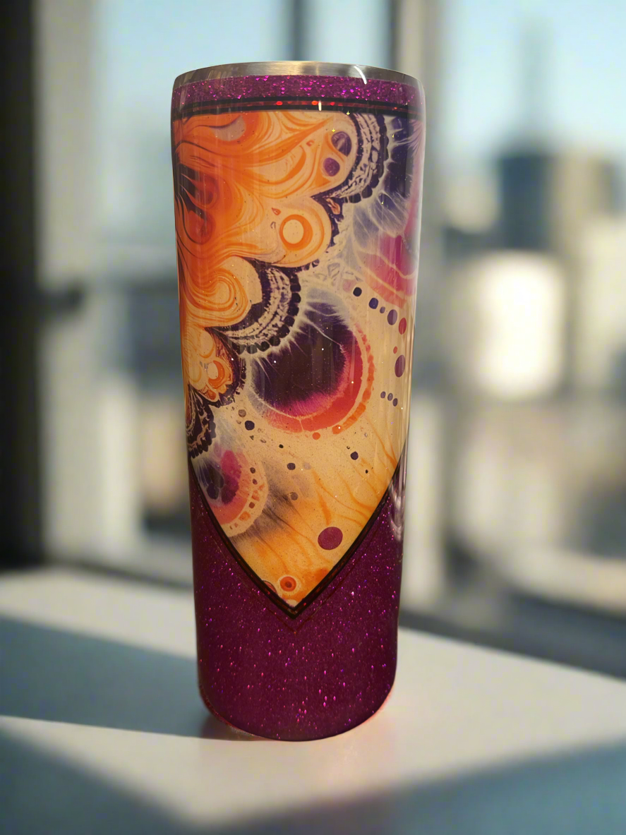 Custom Orange/Pink Mandala Stainless Skinny Tumbler w/Sliding Lid and Straw- 20 Oz
