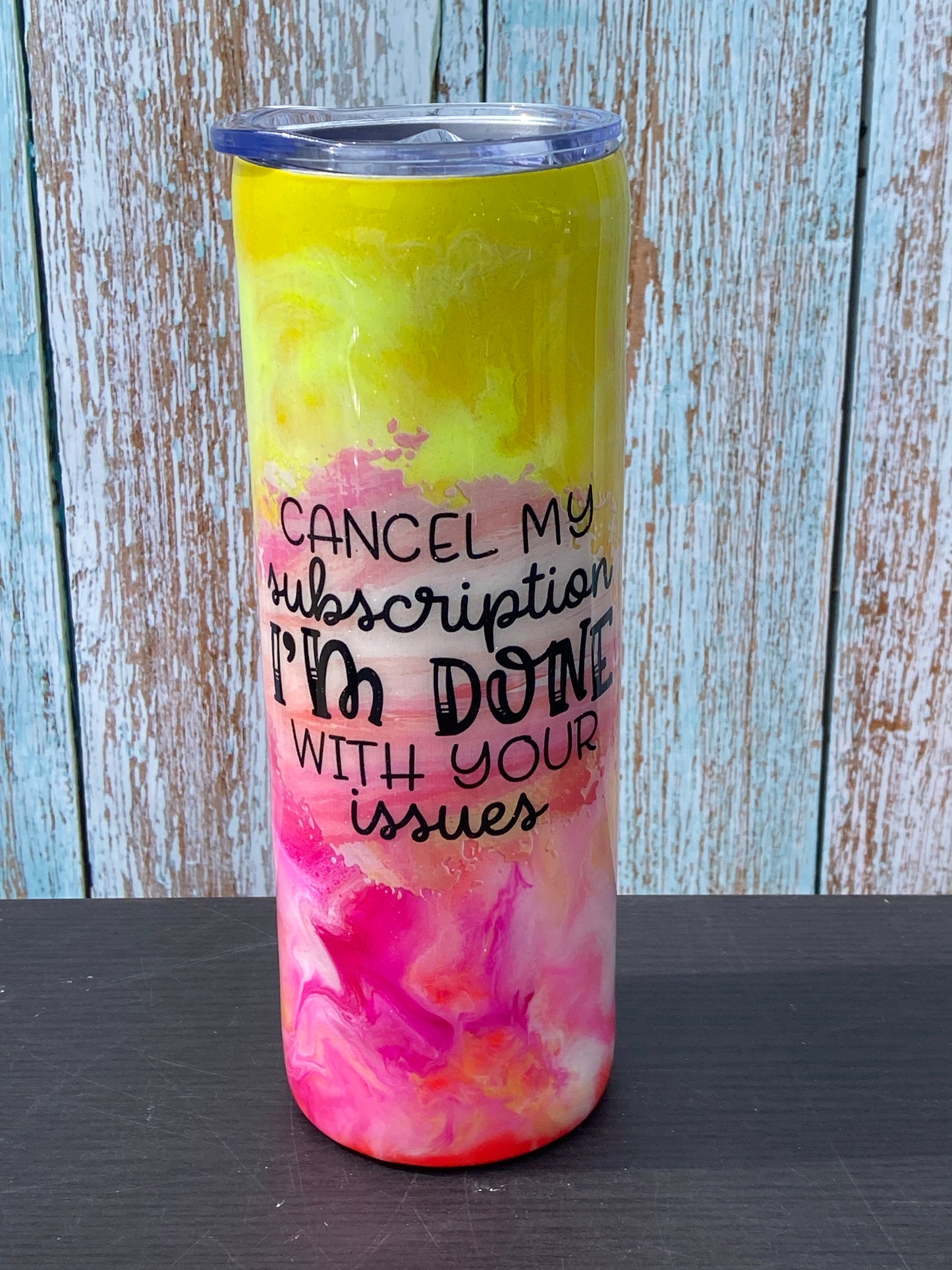 Custom Painted Im Done Stainless Skinny Tumbler w/Sliding Lid and Straw- 20 Oz.
