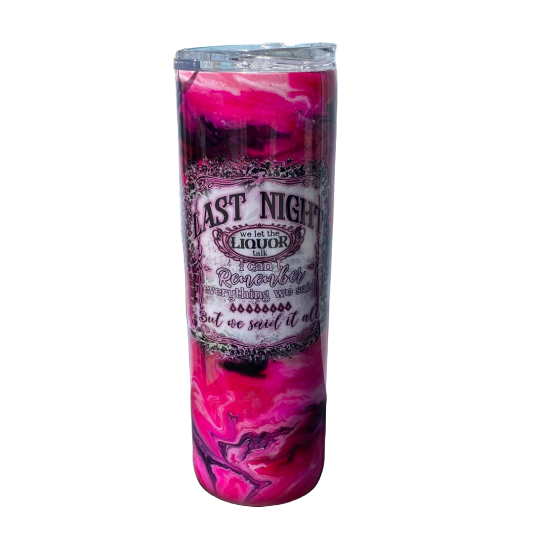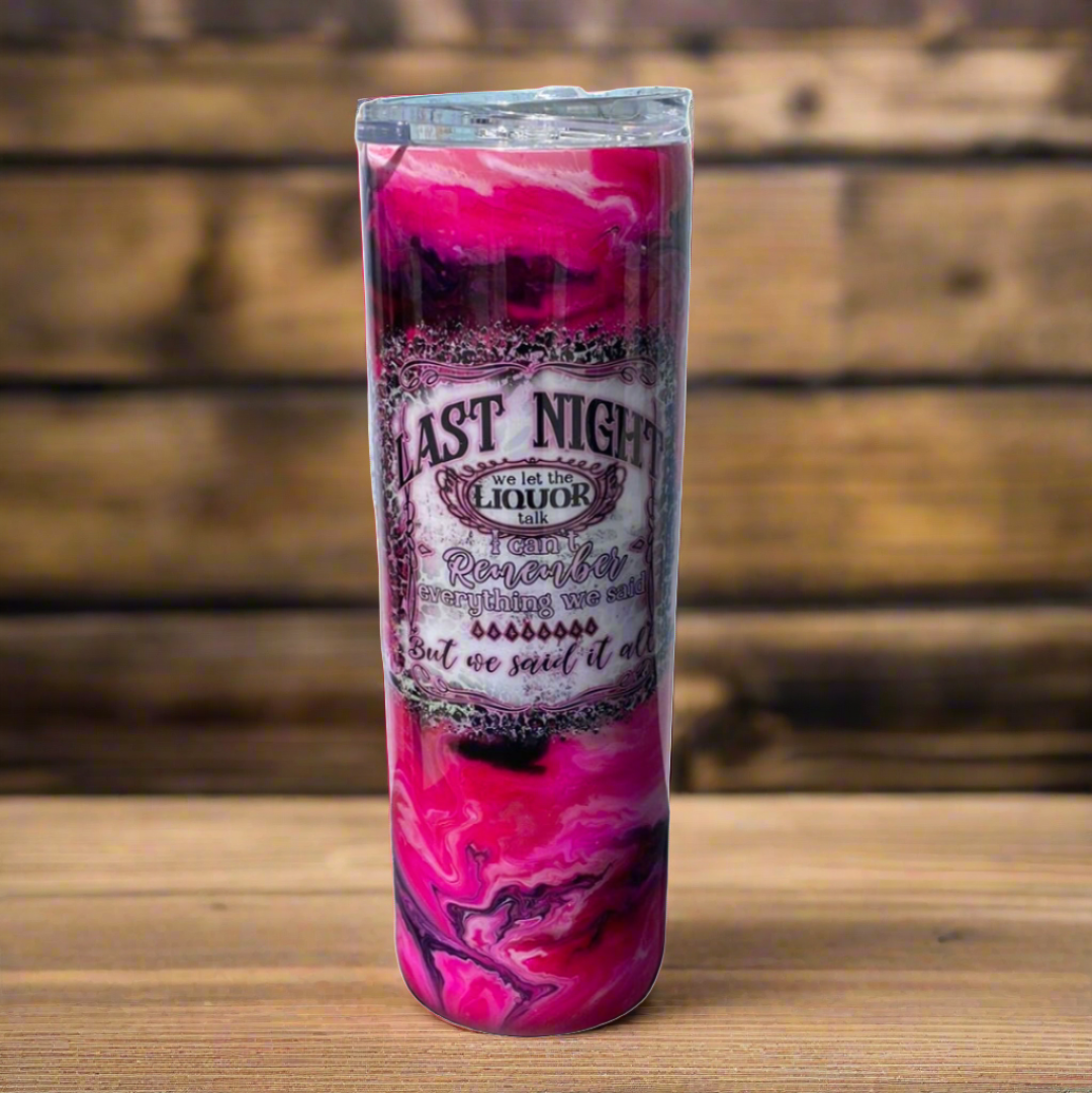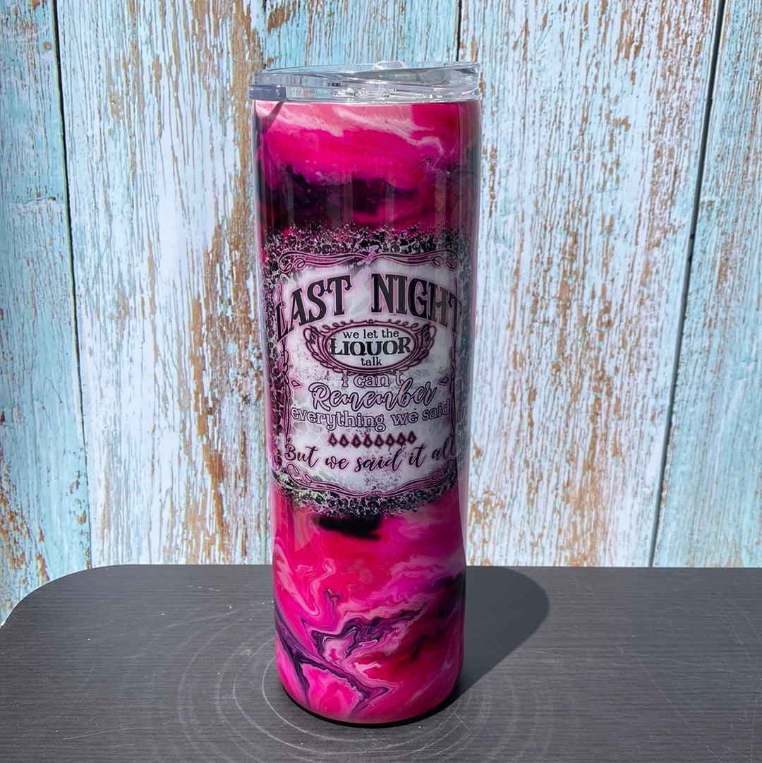 Custom Painted Last Night Pink Stainless Skinny Tumbler w/Sliding Lid and Straw- 30 Oz
