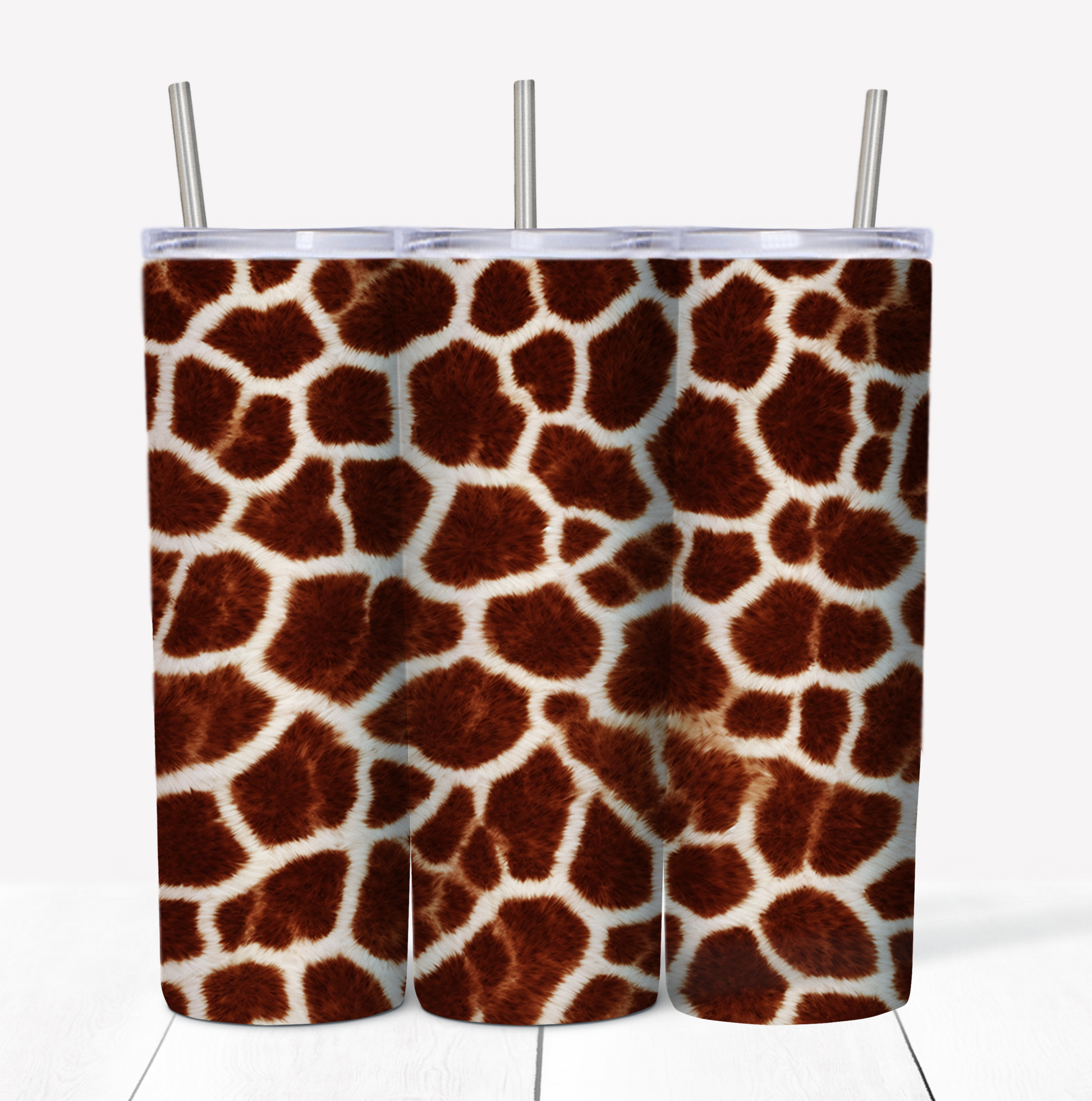 Giraffe Fur Print Skinny Tumbler w/Sliding Lid and Straw