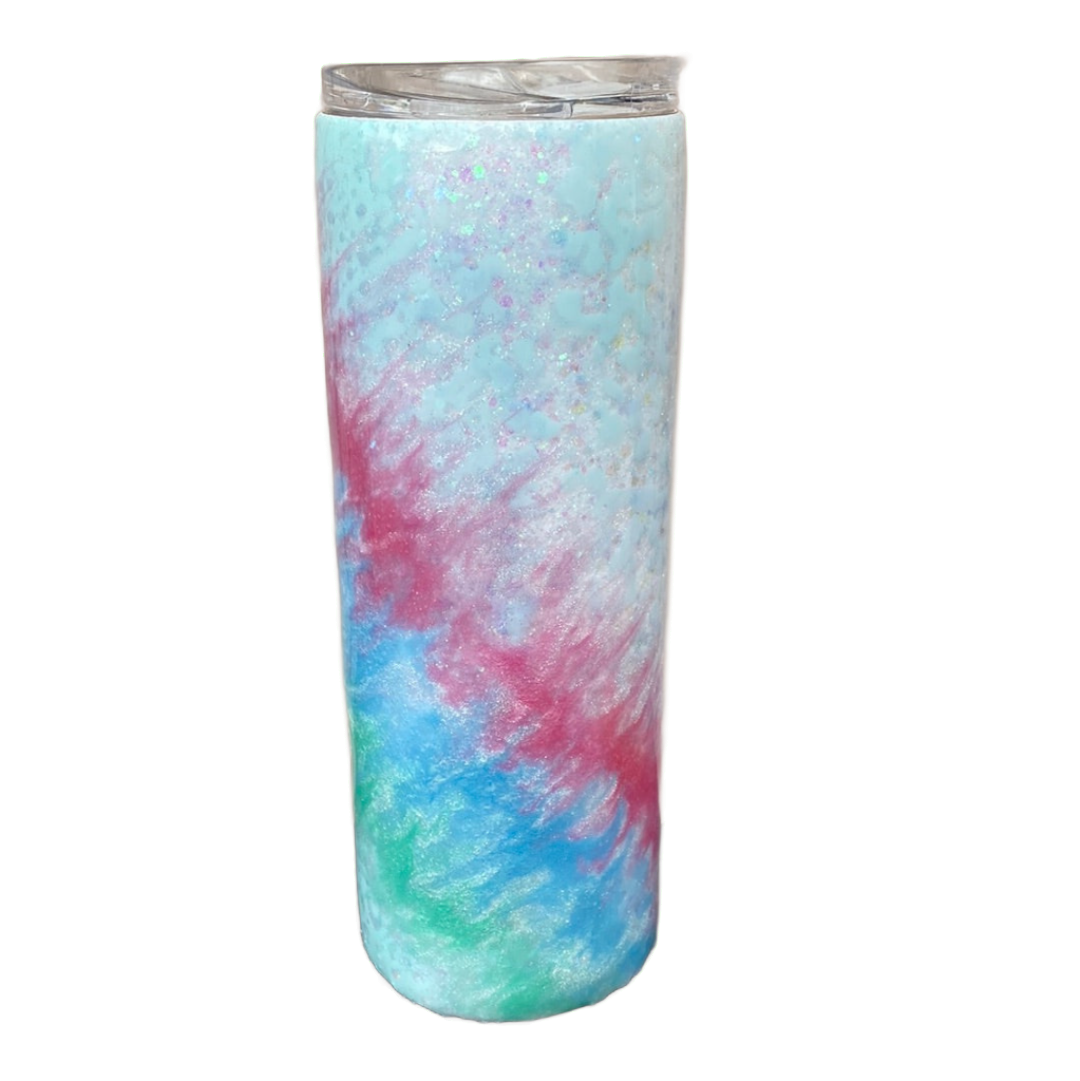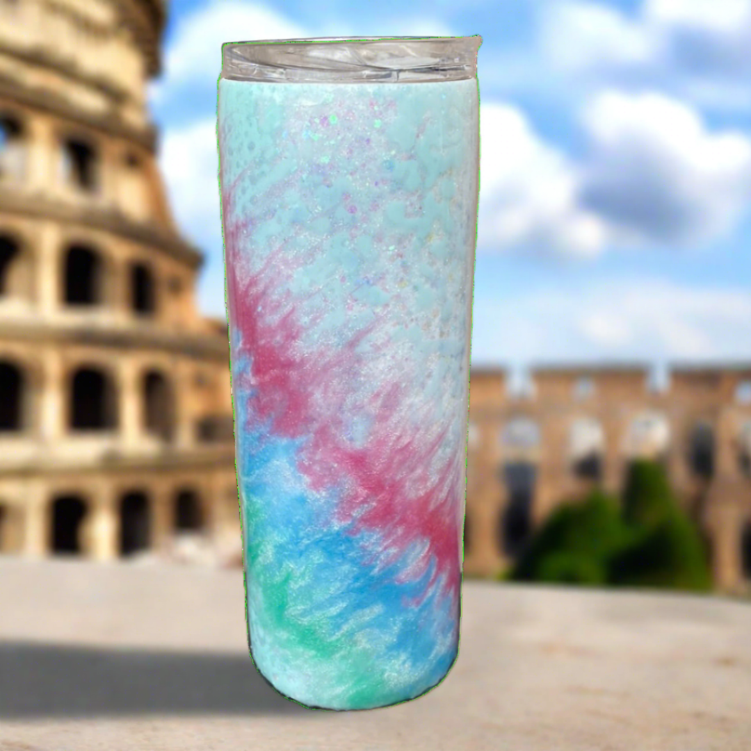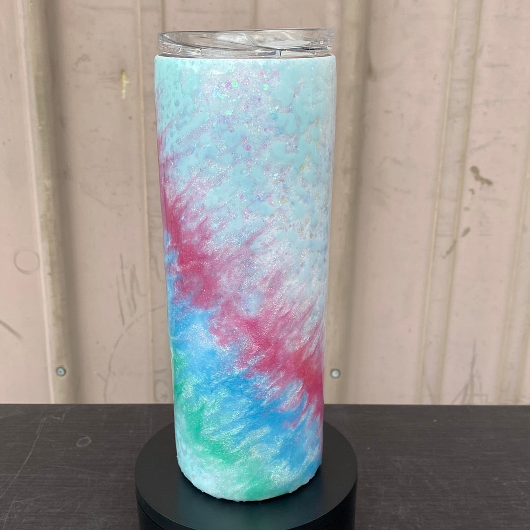 Glow In Dark Custom Painted Pastel Swirl Skinny Tumbler w/Sliding Lid and Straw- 20 Oz