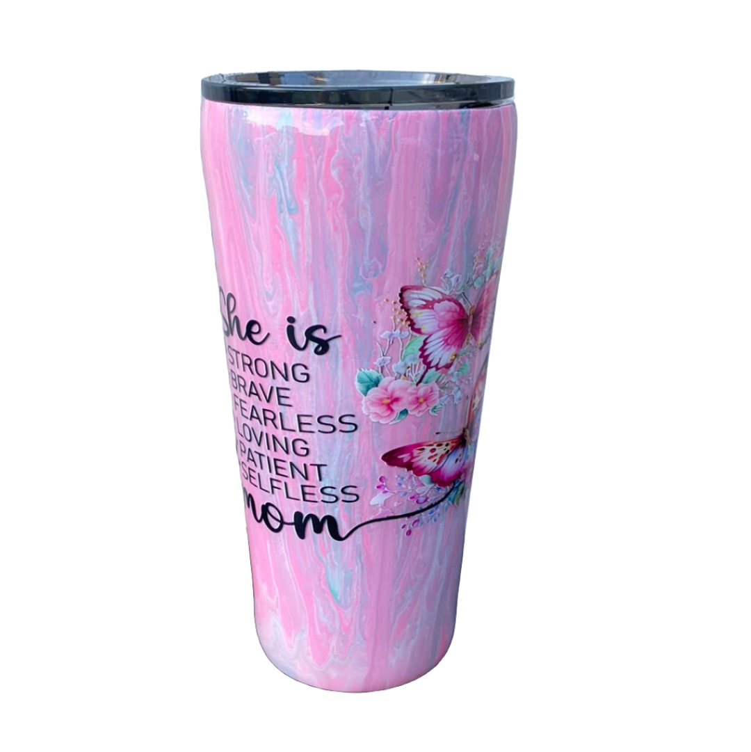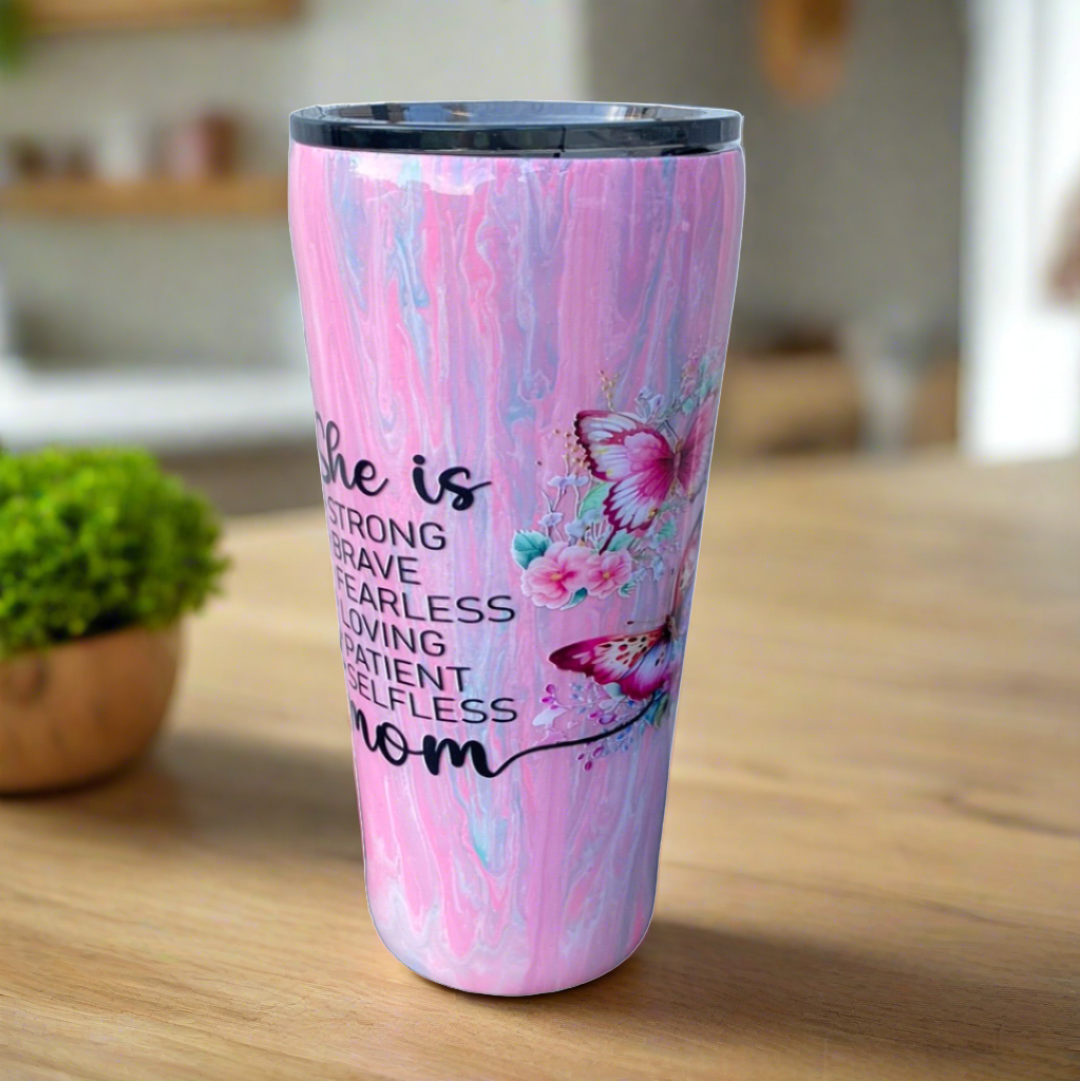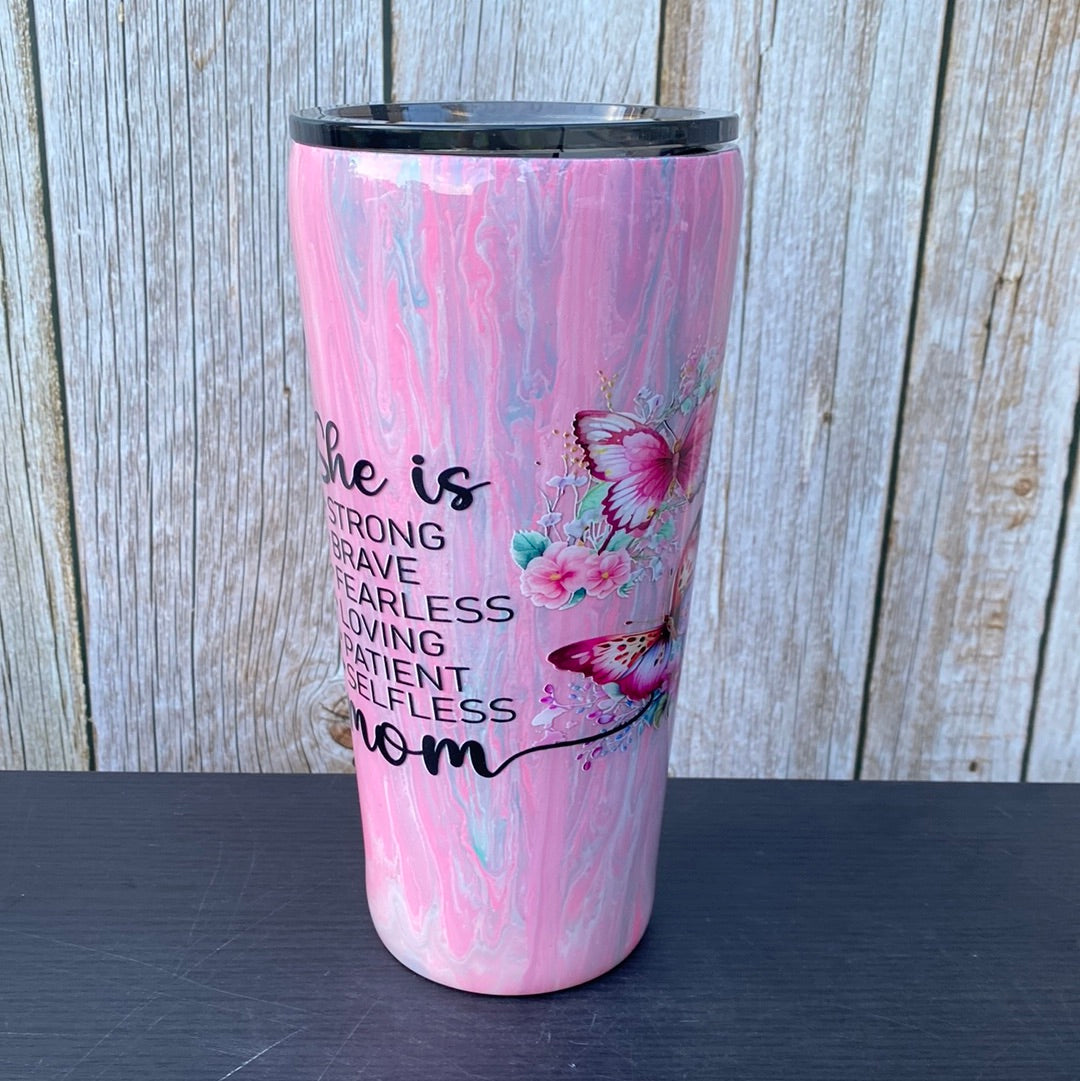 Hand Painted Pink She Is Mom Stainless Gradual Tumbler w/Sliding Lid and Straw- 24 Oz
