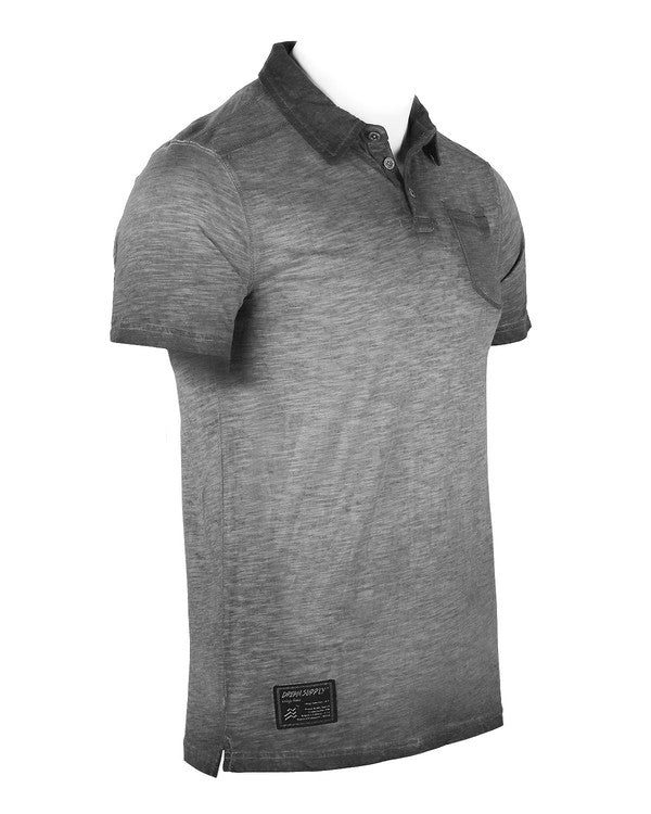 Mens Short Sleeve Oil Wash Henley Pocket Polo