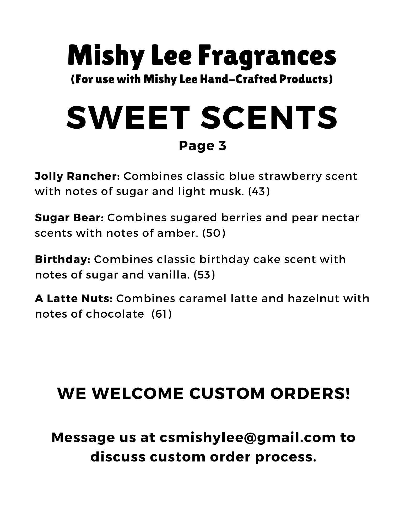 Mishy Lee Freshies are Hand-Made to order. We make these with aroma beads and natural fragrance oils/scents. Average scents will last around 6 weeks. Can be used as ornaments after scent fades.