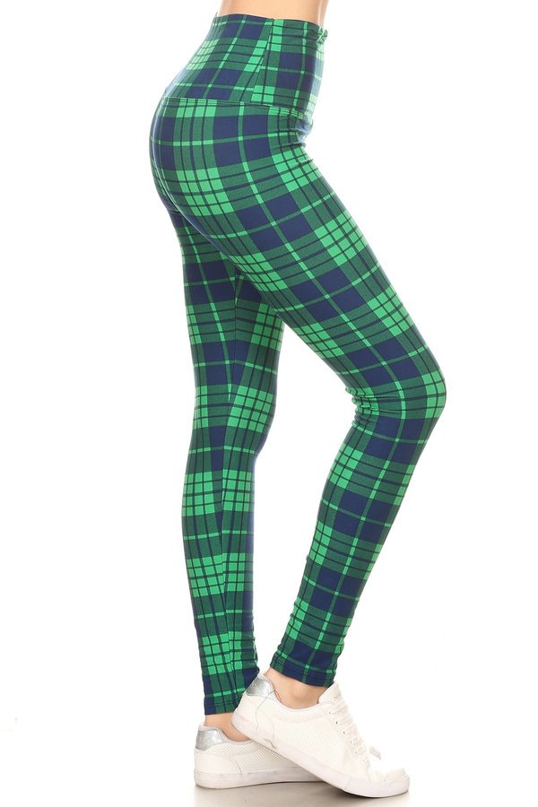 ONE SIZE 5IN YOGA BAND BLUE/GREEN PLAID Printed Leggings