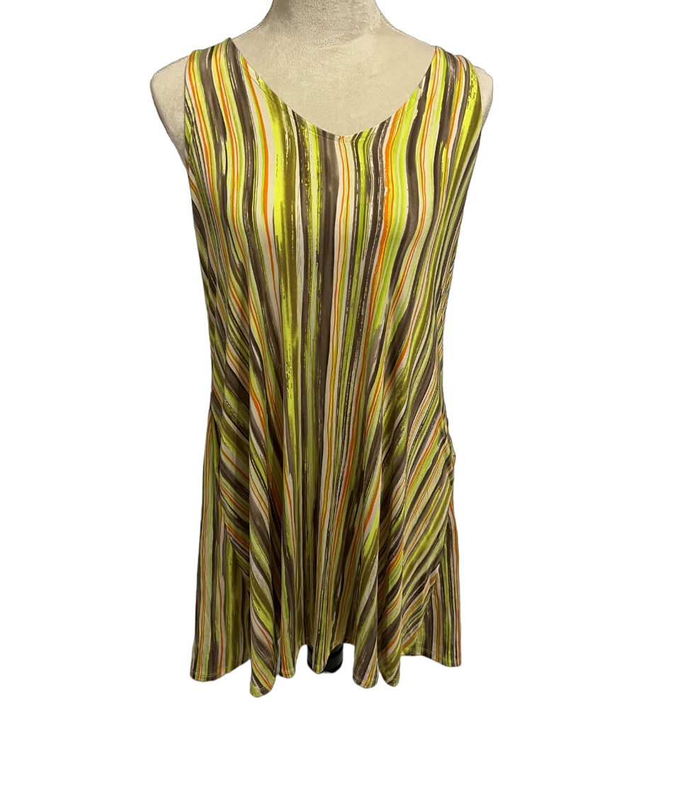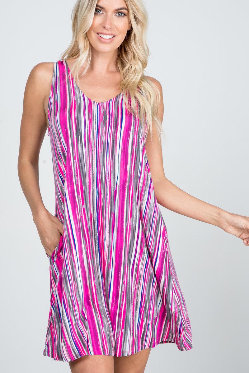 SLEEVELESS MULTICOLOR PRINT DRESS WITH SIDE POCKET